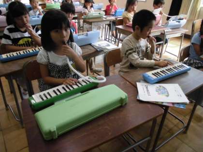 10月12日 鍵盤ハーモニカで音を出したよ。1年生
