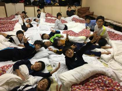 布団も敷いて、今から寝ます。 また明日、チームワークよく1日過ごしましょう。