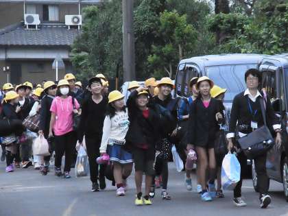 修学旅行に出かけていた6年生が学校に帰ってきました。
