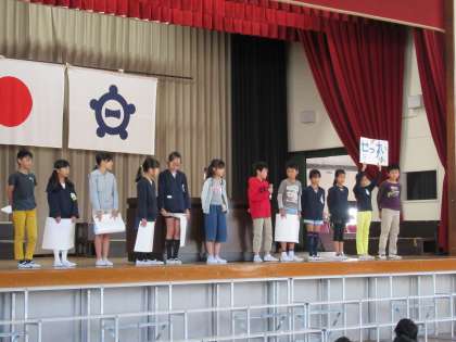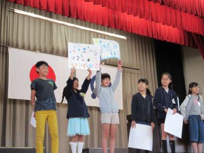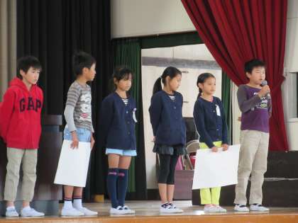 今日の全校朝礼で、エコ活動の呼びかけをしました。準備時間が短かったのですが、全校に伝わりやすく発表できました。