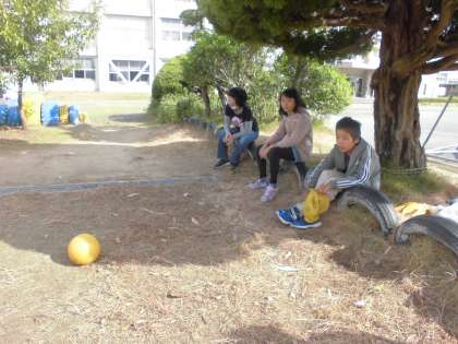 最後の写真は、ボールけり(缶けりと同じルール)で捕まってしまった人たちです。復活のチャンスをしっかり伺っています。