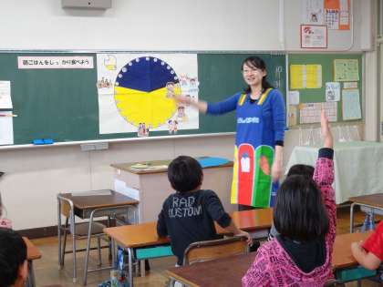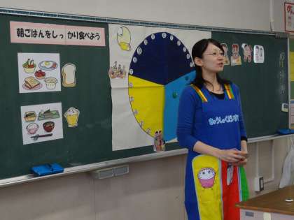 その後、一日を元気よく過ごすためにどんなことが大切か、分かりやすく教えていただきました。子どもたちは熱心に聞き入っていました。