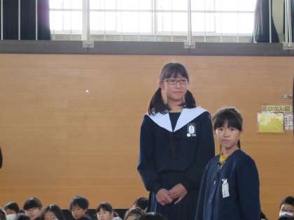 10月31日 あいさつ週間 4年生 公開日 2016/10/31 更新日 2016/10/31 4年 今日の朝礼では、千秋中学校の先輩が来校し、後輩たちにあいさつ週間を呼びかけてくれました。 今週はさらにさわやかなあいさつを交わしたいです!