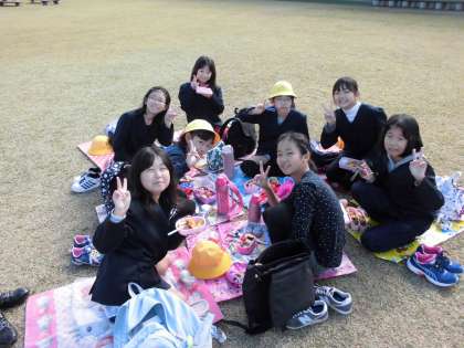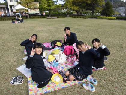 高岡工場の見学の関係で、ご飯を食べる時間は少し早かったのですが、子どもたちはあっという間にお弁当を食べていました。青空の下で食べるお弁当は、とてもおいしいですね。