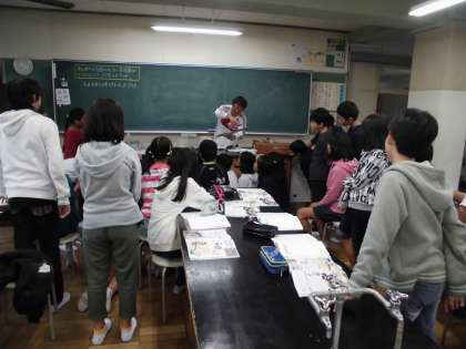 今日は、地層ができる行程を、実際に先生の実験で見せてもらいました。
