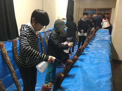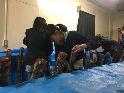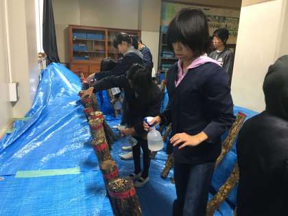 昨日、しいたけの育て方を教えていただいたので、朝から原木に水をあげました。