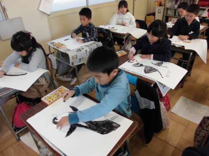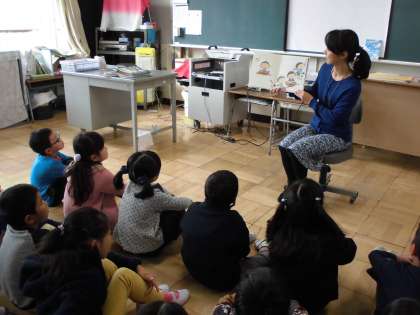 読書月間は終わりましたが、毎週読み聞かせにお母さんが来てくださいます。子どもたちも毎回楽しみにしています。読書感想画を描くことになり、学年全員でお話を聞きました。絵を想像しながら少しずつ描きはじめています。