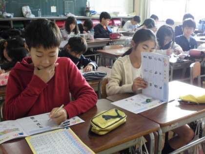 「千秋チャレンジ」では、学年やクラスの学びに合わせて、復習を中心にドリル学習を行っています。朝の時間を有効に活用しています。