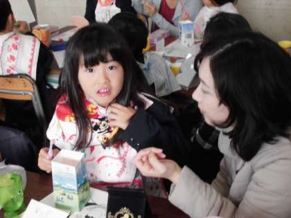 保護者の方と一緒に仕上げ磨きをしました。子どもたちは、きれいな歯になったことを喜んでいました。