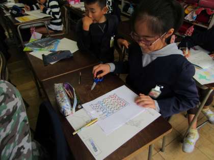 4年生の社会科では、都道府県の学習をしています。形や位置で名前を覚えたり、各県の特産品や名物などを調べて日本地図を作ったりしています。子ども達はだんだん楽しくなってきたようで、熱心に取り組んでいます。ご当地キャラや総理大臣の出身県まで力作ぞろいです。