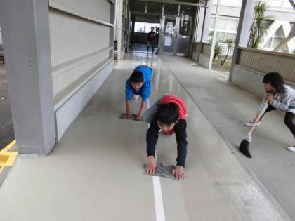 清掃時間に、渡り廊下の雑巾がけを頑張っている子を見かけました。