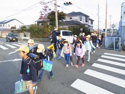 今日も、班長さんが通学班を安全に連れてきてくれました。班長さんありがとう。