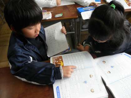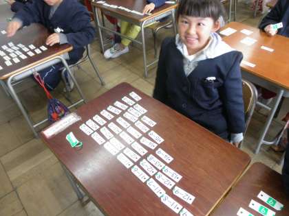 今日は教科書に載っているカードの並び方の規則を見つけ、同じように並べました。