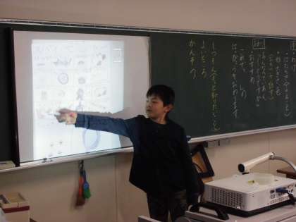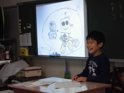 国語の時間に、あったらいいなと思うものを一人ひとりが考え、発明したものを発表しました。「スパイセット」や、「地球幸せ機」「ご飯作る機」など、子どもたちの思いがこもった発明が多くありました。
