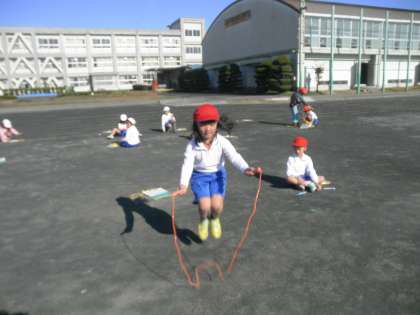 体育で縄跳びの練習をしています。前跳びや後ろ跳びは何回か跳べる子がいました。駆け足跳びが難しかったようです。休み時間にも練習している子がたくさんいました。