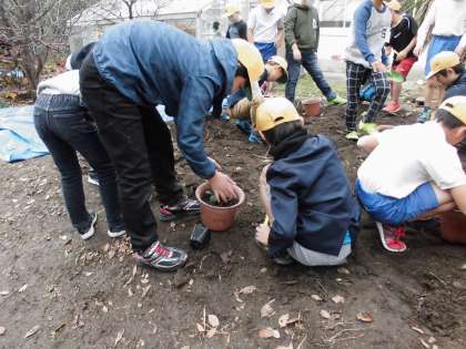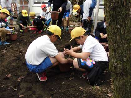 今日は3年生に教えながら、協力して花の苗を植えました。
