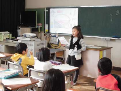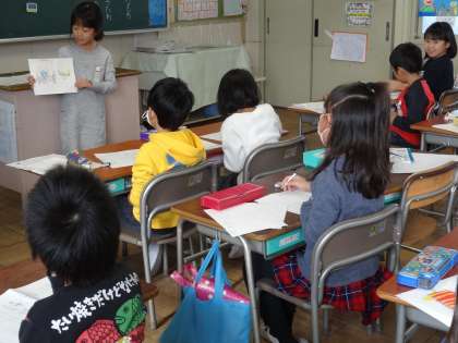 国語の学習「あったらいいな こんなもの」の発表会をしました。子どもたちがが想像力をふくらませて、あったらいいと思う道具を考えました。質問をしたり、いいねと感想を言ったりしてとても楽しい発表会になりました。
