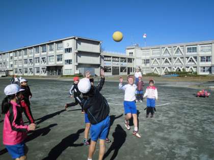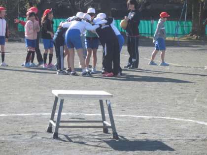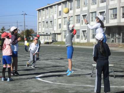 体育でポートボールをやっています。今日が最後のゲーム。最初に比べると、ずいぶん上手になりました。全員で協力してプレーすると勝てるということもわかりました。