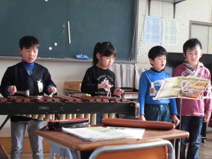 2組では、音楽の発表をしました。鉄琴や木琴を使って、メロディーに合わせながら歌うことができました。心が温まる発表でした。