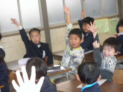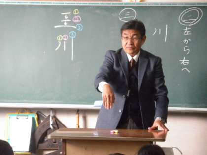 漢字の書き順について、教頭先生に楽しく教えてもらいました。「上から下に書く漢字」「左から右に書く漢字」「横からたてに書く漢字」いろいろな漢字を仲間に分けました。