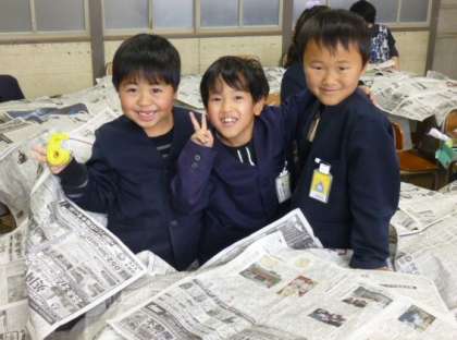 新聞紙を使って迷路を作ったり、鬼ごっこをしたりして、楽しく遊びました。