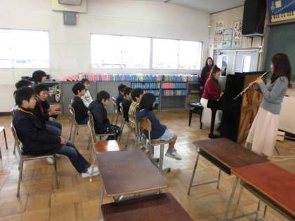 ピアノ・オーボエのゲストティーチャーの演奏を聴きました。ピアノの迫力のある演奏やオーボエの優しい音色にうっとり聴き入っていました。特に、ディズニーメドレーや今流行りの恋ダンスの曲がお気に入りだったようです。