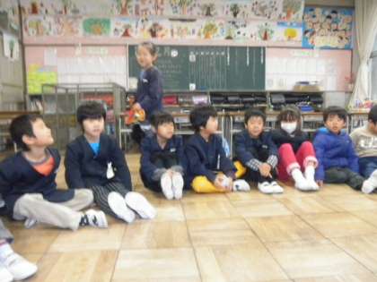 2学期最後の日、2時間目にお楽しみ会をしました。なんでもバスケットでは、「くろいズボンをはいている人」「アイスクリームがすきな人」など、おもしろいお題で楽しみました。ハンカチ落としでは、全員が順番に鬼をすることができました。