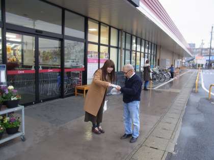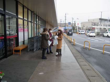 万引き防止キャンペーン(冬季)として、PTA役員と教員でビラ配りをしました。