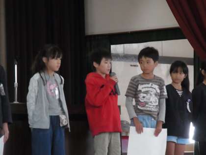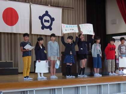 4年生が、児童集会で全校児童に対して節水を呼びかけました。