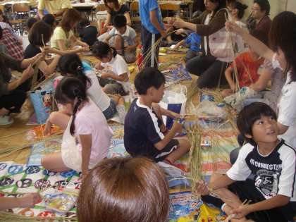 お忙しい中、親子ふれあい教室に多数参加してくださいましてありがとうございました。ワラや麦殻を使用して、世界に一つしかない素敵な虫かごやのれんやリースができこどもたちは大喜びでした。子どもたちやお母さんお父さんの豊富なアイデアに驚きました。お疲れ様でした。