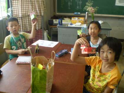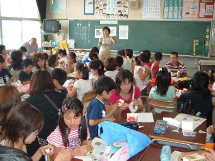3時間目の親子ふれあい活動では、牛乳パックを使って、ひし形ペン立てを作りました。子どもたちはそれぞれ、好きな模様の包装紙や折り紙で牛乳パックをかざり、オリジナルのペン立てができました。保護者の方々にも、お手伝いをしていただき、子どもたちは、とても楽しそうでした。たくさんのご参観ありがとうございました。