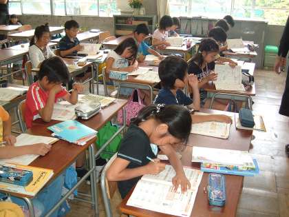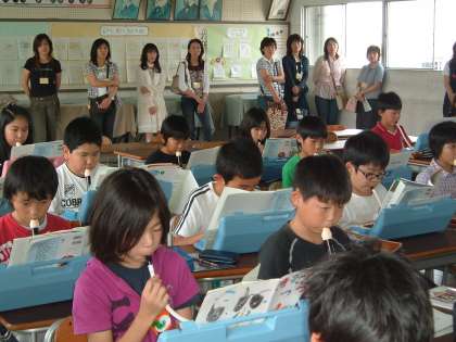 3年生の算数(少人数)、4年生の英語(マーク先生とのTT)、5年生の音楽の授業のようすです。