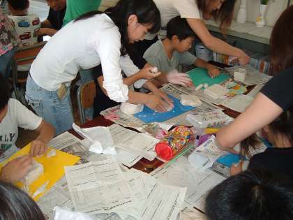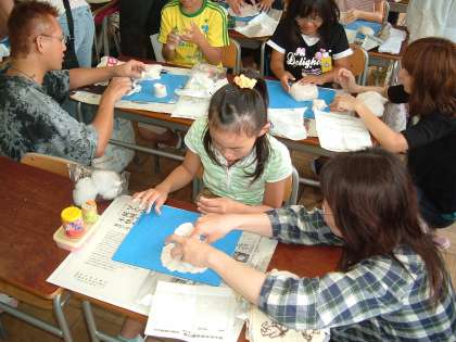 4年生は2時間目に紙粘土を使って、家の人と一緒にみんなの夢の家を作りました。いろいろな形にしてみたり、飾りをつけてみたり、いろいろ工夫して作ることができました。完成した作品は素晴らしいものばかりでした。みんな、たいへんよくがんばりました!!