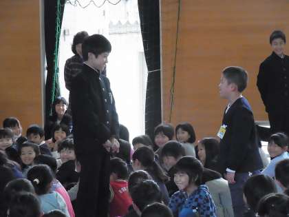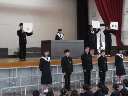 12月27日 回想 小中連携あいさつ運動 公開日 2016/12/27 更新日 2016/12/30 コミュニティスクール・学校運営協議会 2学期 千秋中の生徒が本校に来校し、あいさつを呼びかけました。