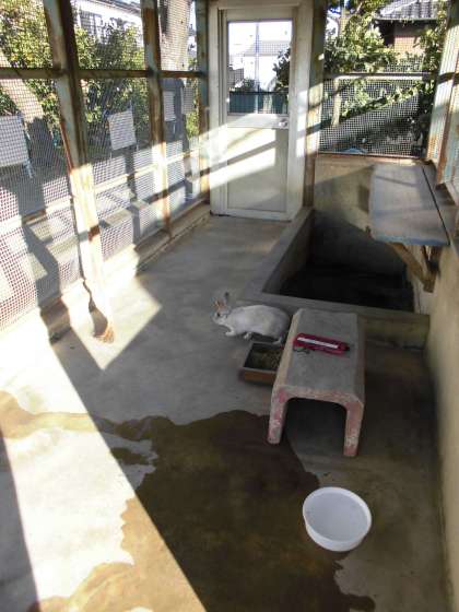 ウサギ小屋を掃除すると,外に出てすぐに戻りました。