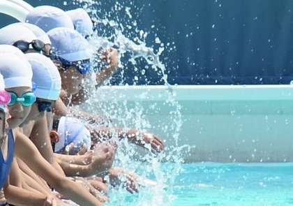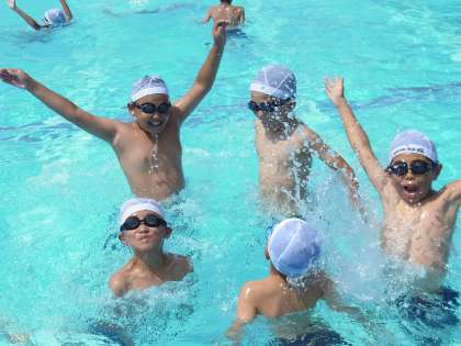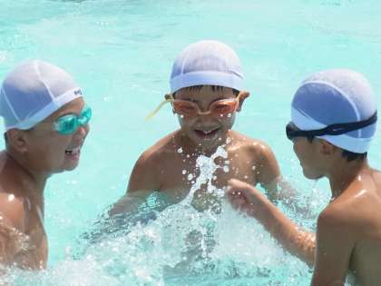 夏休み プール解放では、大勢の千秋っ子が水泳を楽しみました。
