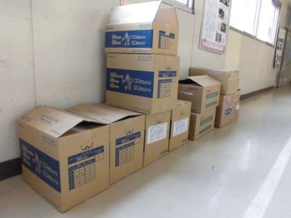 職員室前には、続々と新学期に使う教材が届いています。
