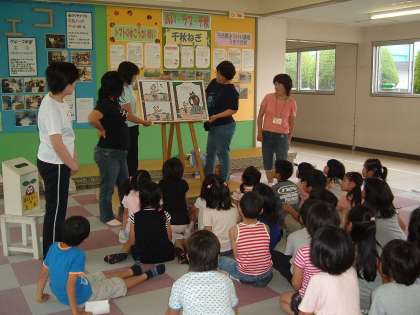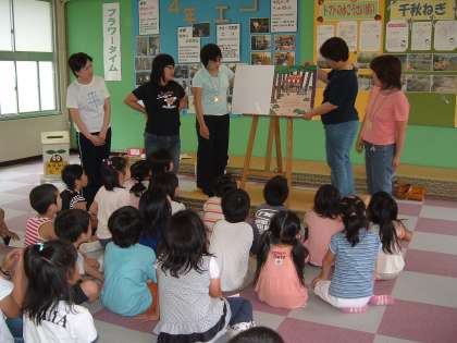 毎週火曜日は、朝の読書タイムの時間に各クラスで、ボランティアの方々による読み聞かせを行っていますが、あじさい読書週間でもあり、読み聞かせボランティア「おはなしのたね」の方々が、中間放課と昼放課に多目的ホールで読み聞かせをしました。子どもたちは、本のお話に夢中になって聞き入っていました。