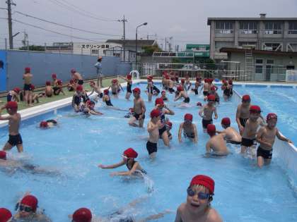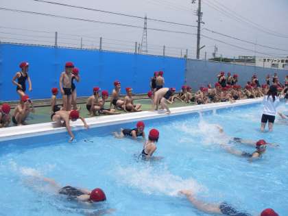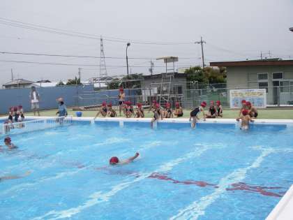 子どもたちが楽しみにしていた水泳が始まりました。絶好の水泳日和になり、楽しく水遊びをしました。