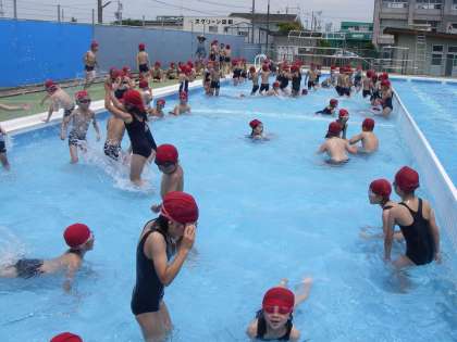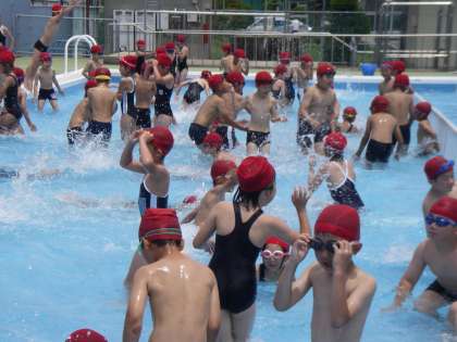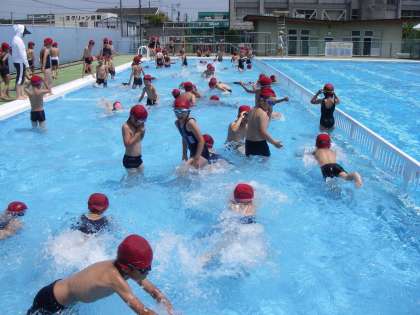 今日は、全校で草取りをしました。各クラス決められた場所の草取りを一生懸命しました。その後、2時間目は、楽しいプールです。汗をいっぱいかいていたのでプールの水がとても気持ちよかったです。