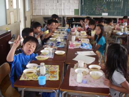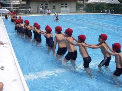今朝は、天候がよくなかったので、プールに入れるかどうか子どもたちは、朝から 気になっていました。しかし、3時間目になるころには、天候も回復し、水あそびを楽しみました。昨日収穫した野菜を塩もみにして、給食の時間に食べました。おいしかったです。