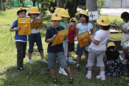 自分の好きな木を決めて覚えたり、ペアの6年生に教えてもらったりしてたくさんの木の名前を覚えました。