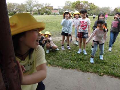 一年生と一緒に遊びました。鬼ごっこをしたり、だるまさんがころんだをしたりして、仲良く遊ぶことができました。