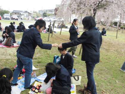 犬山城の見学の後は、お楽しみのお弁当タイム!友達と仲よくおやつを交換しました♡