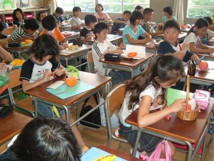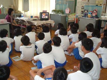 1時間目に6年2組が保健室で体重測定をした後、熱中症についてビデオを見ながら学習をしました。また、5年3組は5時間目に図工の授業をしました。そのときのようすをお知らせします。