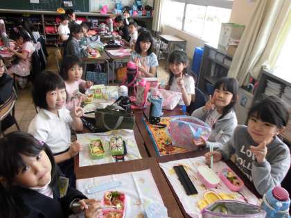 今日は、お弁当の日。ペアの子と一緒にお弁当を食べました。ペアの子とは初顔合わせだったので、少し緊張気味でしたが、愛情いっぱいのお弁当を食べながら、和やかに過ごしていました。