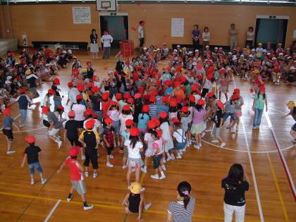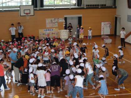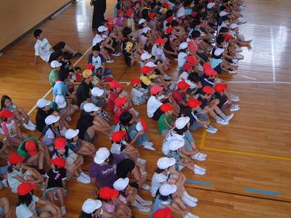 7月3日、児童集会で紅白玉入れ大会を行いました。