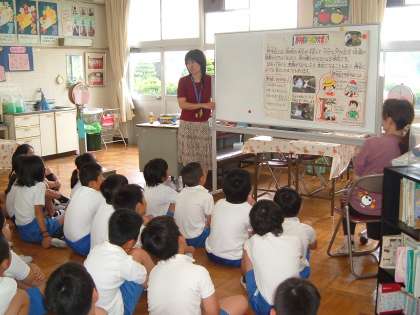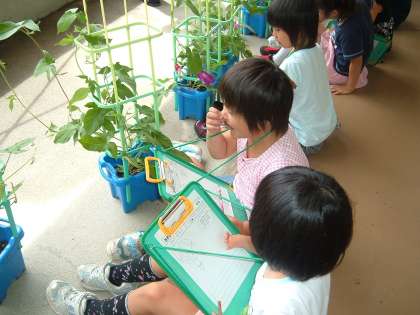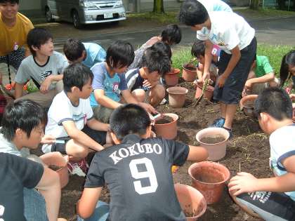 5年1組の保健の授業では、体重測定の後に熱中症のビデオを見た後、熱中症についての話をしています。最近暑くなってきたので、子どもたちも熱中症は他人事ではないと話を聞いています。1年2組では、アサガオの観察に取り組んでいます。自分たちが育ててきたアサガオですので、より一層興味深く観察しています。6年生は、昨日できなかったメイン花壇の苗植えをするため、土づくりをしました。