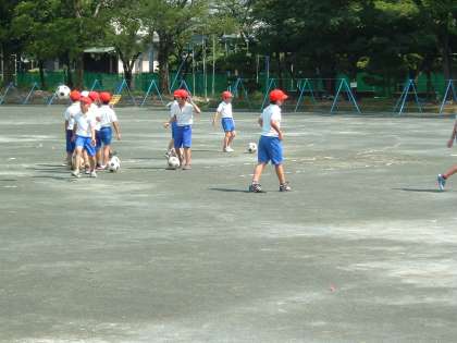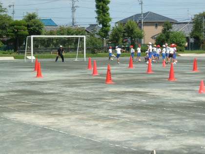 部活動(サッカー)のようすです。今日は大変暑くなりましたが、熱中症対策のため、定時の休憩と給水をしながら行いました。