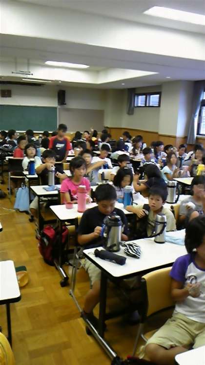 学校出発は、雷と大雨でとても心配しましたが、12時前に無事、着きました。こちらも雨ですが、みんな元気にお弁当をいただきました。